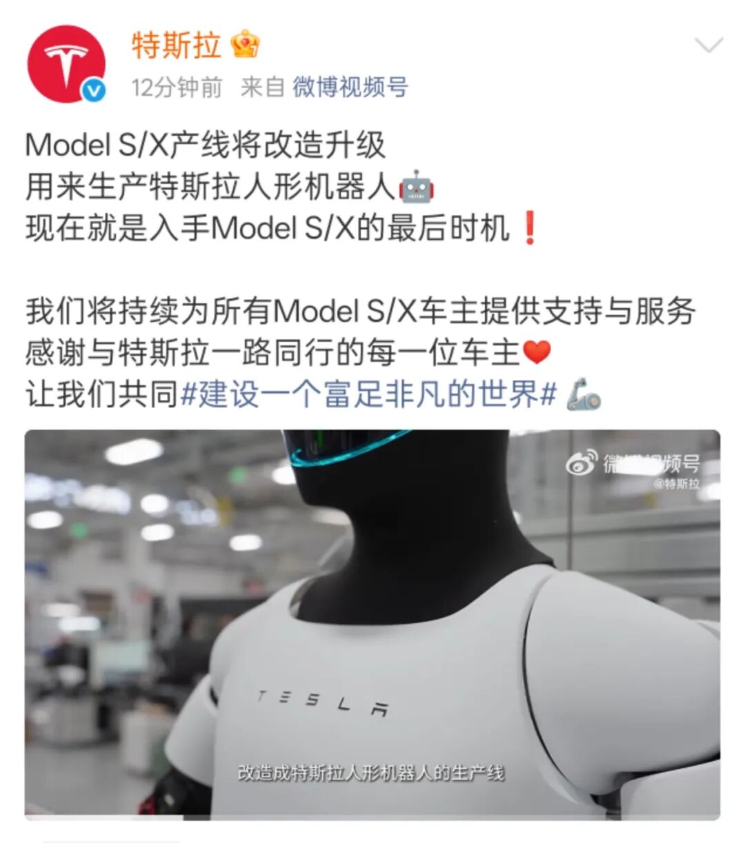 现在特斯拉已经宣布原来的 Model S 和 Model X 产线将进行改造升级,用来生产特斯拉人形机器人。